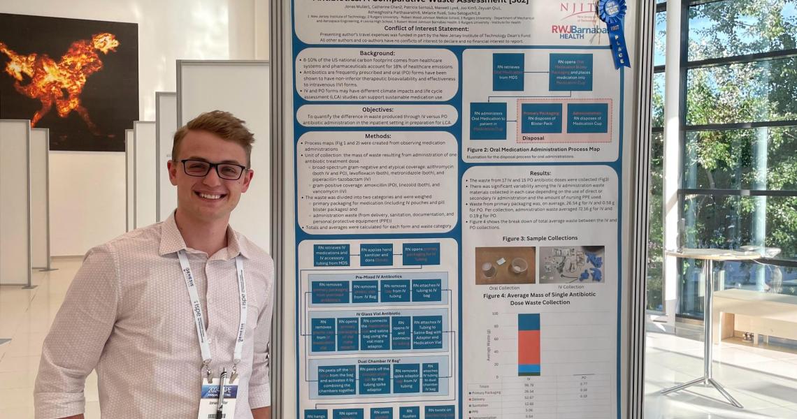 In January, Muller joined researchers from Rutgers Robert Wood Johnson Medical School to study the difference in environmental waste produced from intravenous (IV) and oral (PO) antibiotic therapies after being led to the project by his mentor Zeyuan Qiu, interim chair of NJIT’s Department of Chemistry and Environmental Science and professor of environmental science and policy.